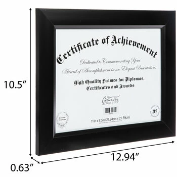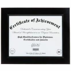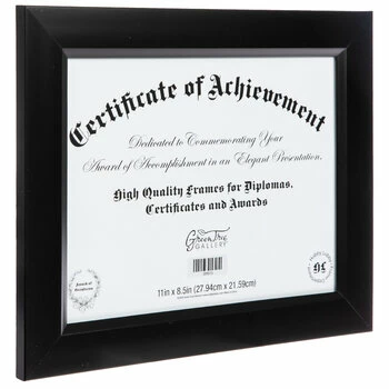 Add a personalized piece of decor to your home by showing off your achievement or diploma. Black Document Frame features flat edges and an angle down towards the glass. This plastic frame has an MDF back. It’ll be perfect for your office at work or home!