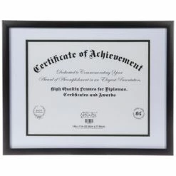 Put your achievements on display using ourΒ Black Document Frame in your room or office! This simple plastic and MDF document frame is perfect for certificates, awards, and diplomas. The flat black profile, glass, and layered white and black matsΒ will draw attention to the frame’s contents.Β Your document deserves to be put on display, so get started with this stylish frame!