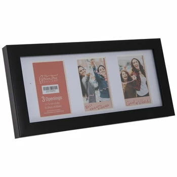 Display your favorite memories in style with Black Flat Collage Frame. This flat, plastic frame boasts a glossy black color, a white mat with three photo openings, and a clear glass screen. Coordinate a darling living room or bedroom with the sweetest of memories!