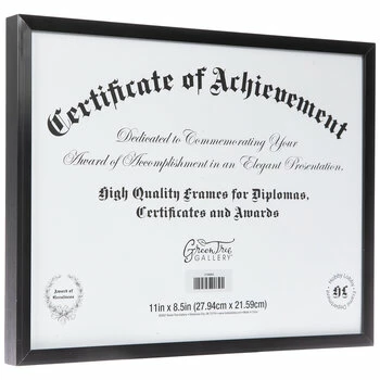 Put your achievements on display using ourΒ Black Metal Document Frame in your room or office! This simple document frame is perfect for certificates, awards, and diplomas. The black aluminum frame and simple glass will draw attention to the contents. Your document deserves to be put on display, so get started with this stylish frame!