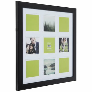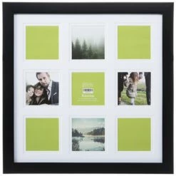 Take the time to artistically display your most treasured memories! Black Wood Collage Wall Frame is made of MDF and glass in a square shape. There is a black frame and nine square photo openings, and each photo has two layers of white mats around it. Place in photos from different events, or take the opportunity to color coordinate your display!