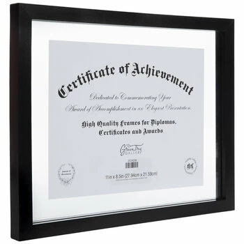 Display your choice of diploma, certificate, or other document in modern style using Black Wood Float Document Frame! This float frame boasts a glossy black MDF outline and a clear glass that can squeeze to contain your chosen document. Hang it up and show it off in your home or office!