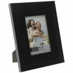 Display your photos in a clean and classy way with this Black Wood Frame! This MDF and glass piece features black color and beveled outline. Insert your favorite photos and set this out for display on a counter or table!