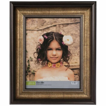 Show off your favorite memory in ornate style using Bronze & Gold Beveled Frame! This plastic frame boasts a two-toned metallic design with sheer bevels and a dotted trim around the opening, a clear glass screen, and an MDF photo back. Fill a table in your room or office with a heartfelt photo framed in lots of personality!