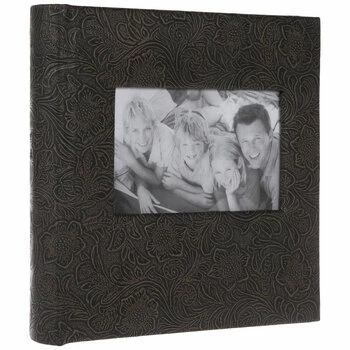 Keep your photos safe and on display using this Brown Filigree Floral Photo Album. This gorgeous album features an embossed floral filigree design in tan against a dark brown background. With enough space to contain up to one hundred and sixty photos, you can store a myriad of photos with one album. Leave notes and captions on the lined notes next to the photo openings and display your favorite special memory in the cover opening.