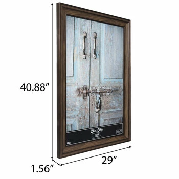 Create a gorgeous home gallery with the help of ourΒ Brown ScoopΒ Wood Look Wall Frame. This classic frame features glass and an MDF backboard. The frame is plastic with a streaky brown color that resembles wood. With rounded bevels and deep scoops towards the photo opening, this frame will draw all eyes towards its contents. Take your favorite photo or poster and use this frame to put it on display!