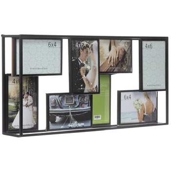 Frame a special memory or heartfelt occasion in this beautiful Dimensional Collage Metal Wall Frame. This pretty, industrial frame features a dimensional metal design with a deep black finish and eight photo openings all outfitted with glass inserts to protect your precious treasures. Coordinate a bedroom, living room, or bathroom with framed beauty!