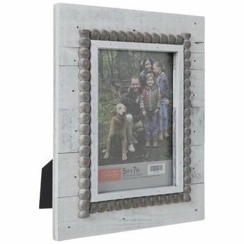 Put your memories on display in rustic style using this Distressed White Beaded Wood Frame! Boasting the look of white planks with a beaded fillet, this wood frame has glass and an MDF photo back. The plank front has slight distressing and decorative nail holes. Slip your favorite photo inside and show it off without compromising on your farmhouse style!