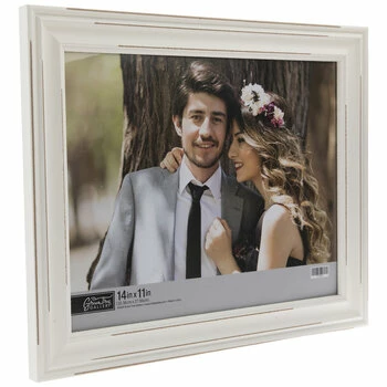 Call attention to one of the best memories in this Distressed White Beveled Wood Frame! This MDF frame offers a simple rectangular shape with beveled details, a distressed white finish, and a glass insert. Insert your desired photo and display it on a table or shelf!