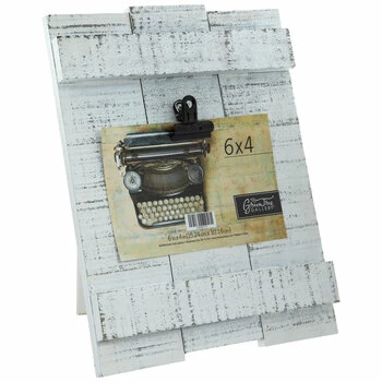 Showcase a favorite memory on Distressed White Wood Frame with Clip. This gorgeous frame is constructed of MDF pieces with a highly distressed white finish and a glossy black metal clip at the top for displaying your chosen photograph. Let your best memories take over your space!