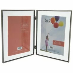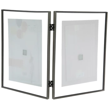Display your best photographs in a charming, sleek frame! Double Photo Metal Float Frame features two pewter-colored metal frames attached together by small hinges, creating a door-like opening effect.