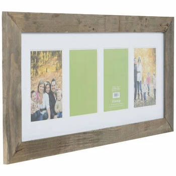 Gray Barnwood Collage Wall Frame is the perfect way to show your down-home style. This gray wood frame has a weathered barnwood look with protective glass and an MDF back. The white mat insert has a single step downward toward each photo opening to accentuate your chosen images. Tell a story with your memories displayed proudly for all to see!