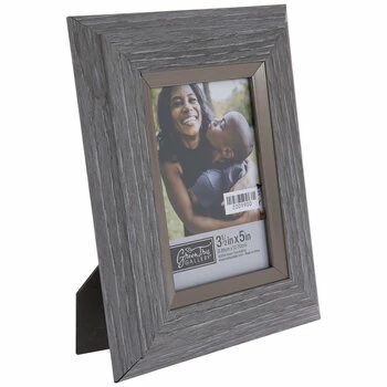 Fill your home with photos of cherished memories, friends, family, and more! Gray Fillet Wood Look Frame boasts a plastic frame with angled sides, a metallic fillet near the opening, and an MDF photo back. Plus, its clear glass screen will display and protect your chosen photo. Set it out on a shelf or a mantel for a fantastic way to fill your space with sentiment!