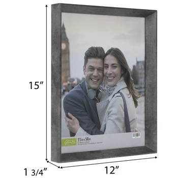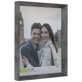 Enhance your walls with memories from your life with Gray Slanted Wall Frame. This plastic frame boasts a gray wood look body with a sharp slant towards the photo opening, a clear glass screen, and an MDF photo back. Simply add your favorite photo for a memorable addition to your space!