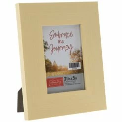 Fill your home with photos of cherished memories, friends, family, and more! Light Yellow Distressed Wood Look Frame sports a flat, plastic frame with a brushed, light yellow wood grain appearance and an MDF photo back. Plus, its clear glass screen will display and protect your chosen photo. Set it out on a shelf or a mantel for a fantastic way to fill your space with sentiment!