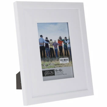 Fill your home with photos of cherished memories, friends, family, and more! Matte White Stepped Frame boasts a plastic frame with a matte white color, a single, shallow step down towards the photo opening, and an MDF photo back. Plus, its clear glass screen will display and protect your chosen photo. Set it out on a shelf or a mantel for a fantastic way to fill your space with sentiment!