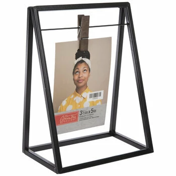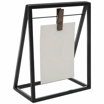 Show off your favorite people’s photos with Metal Clip Frame. This metal frame has an easel style base, a wire, and a wood clip to hold the image of your choosing. Rest it on a flat surface with other images to keep your people near!