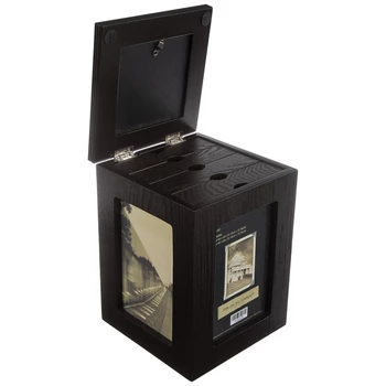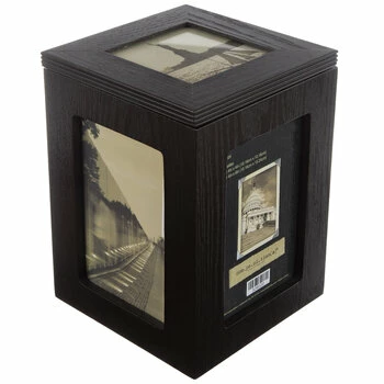 This beautiful decorative accent doubles as a three-dimensional frame and a place to store your photos! Photo Storage Box Wood Collage Frame is made from MDF and features a wood-grain, dark walnut finish. Open up the lid to find four photo album inserts, each capable of containing twenty photos as large as four inches by six inches. Store all of your photos, and display your favorites on the outside!