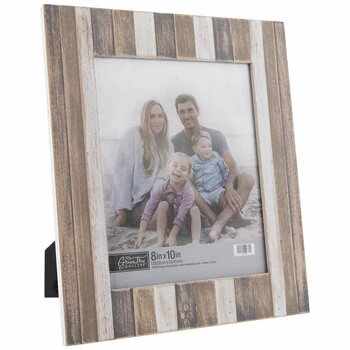 Fill your home with photos of cherished memories, friends, family, and more! Plank Striped Wood Wall Frame boasts an MDF construction with a pattern of brown and whitewashed planks, a flat surface, and an MDF photo back. Plus, its clear glass screen will display and protect your chosen photo. Set it out on a shelf or hang it upΒ for a fantastic way to fill your space with sentiment!