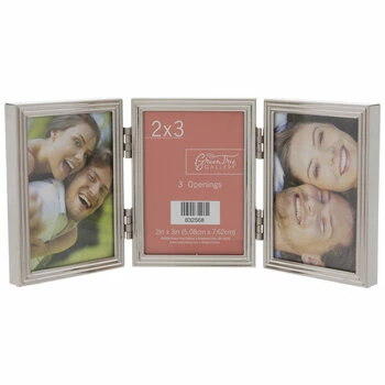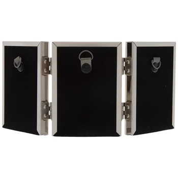 This Ridged Metal Folding Collage Frame will make an elegant statement in any room it is placed in. Featuring a shiny metallic finish, this triptych-style collage frame swivels on hinges, sports a subtle ridged trim, and will protect your photos behind clear, protective screens. Display family memories, photos of your favorite places, or pictures of your friends!