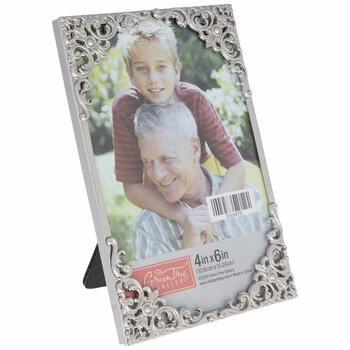 Fill your home with photos of cherished memories, friends, family, and more! Silver Ornate Corners Metal Frame boasts a silver metal frame with ornate scroll accents laid on top of each corner. The frame’s clear glass screen will display your chosen photo and keep it safe. Set it out on a shelf or a mantel for a fantastic way to fill your space with sentiment!