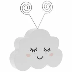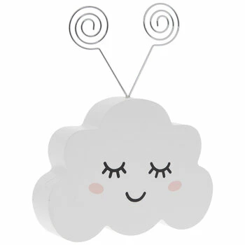 Display your fun photos in a fun way! Wood Smiling Cloud Double Photo Clip is an MDF construction of a cloud in all white with black facial features and smiling cheeks. Attached to the top of the cloud are two metal spiral clips for you to place photos in. Stick your favorite photos of you and your friends inside the spirals, and enjoy your quirky, fun-filled space!