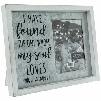 Bring back warm memories of your favorite life event to the surface with Song Of Solomon 3:4 Wood Frame. Featuring a white MDF design in a rectangle shape, this charming frame offers a galvanized metal fillet, a glass insert, and Song of Solomon 3:4 in whimsical black text. Station it on a table or counter for guests to share in the love.