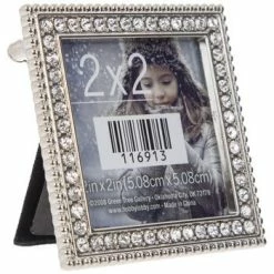 Showcase a memory that’s close to your heart with Square Rhinestone Metal Frame. Constructed of nickle colored metal, this charming, square frame offers a detailed silver and rhinestone border and a glass insert to protect your desired photo. Insert your photograph to display it in style in your bedroom, office, or living room!