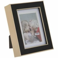 Emphasize your memories! Two-Tone Frame features a block style frame made from smooth plastic. The exterior has a shiny metallic finish while the front has a wood-look in a lovely color. Inside the frame, there is a glass pane, a beveled mat, and a space to leave a vibrant photo!