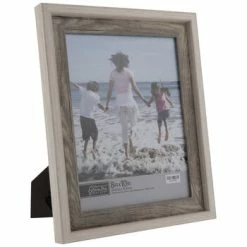 Fill your home with photos of cherished memories, friends, family, and more! Two-Tone Wood Look Frame boasts a plastic construction with white and gray wood look surfaces, a step down towards the photo opening, and an MDF photo back. Plus, its clear glass screen will display and protect your chosen photo. Set it out on a shelf or a mantel for a fantastic way to fill your space with sentiment!