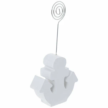 Showcase a photo in your seaside space with this White Anchor Wood Photo Clip! It features a thick, white MDF base in an anchor shape and a silver-colored, metal-wire spiral at the top so you can slide in a photo or small paper artwork. Station it on a tabletop in your home to coordinate with your charming nautical theme.