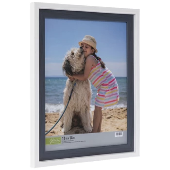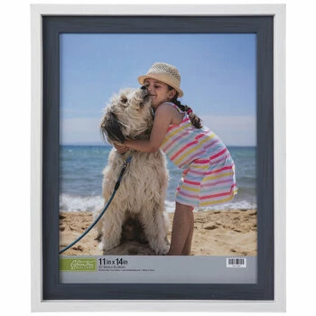 Enhance your walls with memories from your life with White & Navy Stepped Wall Frame! This plastic frame boasts a wood look with a white exterior that steps down towards a navy color, a clear glass screen, and an MDF photo back. Simply add your favorite photo for a memorable addition to your space!