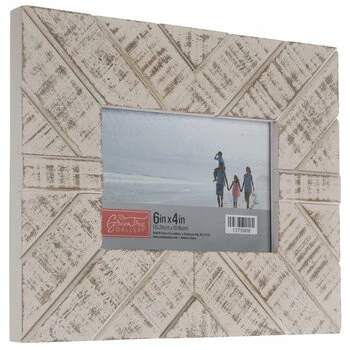 Whitewash Chevron Wood Wall Frame is the perfect way to put your memories on display. This MDF and glass frame has a whitewashed, distressed front with faux planking in a chevron motif. Simply place your favorite photograph inside and nestle it into your home or office decor. Its rustic and aged look will fit right in to farmhouse and coastal themes!