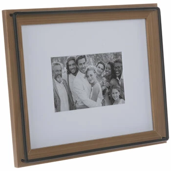 Display a photograph in classic fashion using this Wired Edge Wood Frame! This photo frame is built on a brown MDF base with an elevated black wire for added appeal. The white mat and glass will finish the look and draw eyes towards your chosen image. Set it out on a shelf or a mantel and revel in a beautiful memory!